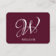Initial Personalized Elegant Burgundy Monogram Business Card
