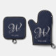 Initial Personalized Elegant Navy Blue Monogram Oven Mitt & Pot Holder Set
