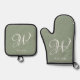 Initial Personalized Elegant Sage Green Monogram Oven Mitt & Pot Holder Set