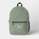 Initial Personalized Elegant Sage Green Monogram Printed Backpack