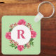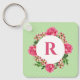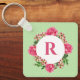 Initial Pink Rose Red White Petunia Polka Dots Keychain