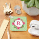 Designed based on my watercolor illustration of pink roses and red and white petunias. A lovely delicate floral wreath arrangement of pink English rose illustration with fine details of rose buds and green leaves with vibrant multicolor red white petunias. The design is has pink monogram initial in the centre which can be customized to your preference