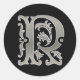 Initial R Round Sticker in silver
