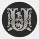 Initial U Round Sticker in silver