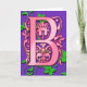 La lettre B sur une carte d'une manière élégante ornementale. Initiale de rose sur un arrière - plan violet, avec le détail vert de feuillage. Disponible sur des cartes de voeux, des cartes pour notes ou des cartes postales. Enveloppes incluses avec la salutation ou les cartes pour notes (aucunes enveloppes avec des cartes postales), intérieur vide. Achat en vrac et des économies.