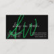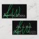 Faites une première impression fantastique avec ces simples initiales vertes cartes de visite professionnels. Ces cartes de visite ont un arrière - plan noir solide. Ils disposent d'une police de script manuscrite avec vos initiales en vert dans l'arrière - plan. Sur le devant, il y a de la place pour votre nom et votre titre. Au verso, il indique "Restez en contact" et permet de disposer de six lignes d'informations de contact telles qu'un numéro de téléphone, un numéro de téléphone portable, un numéro de fax, une adresse e-mail, des poignées de médias sociaux, votre site Web ou toute autre méthode de contact que vos connexions d'affaires utilisent. Il s'agit d'un style de carte de visite générique qui peut être utilisé pour presque n'importe quel type d'entreprise tels que les consultants, les graphistes, les entrepreneurs, les agents immobiliers, les cosmétologues, les coiffeurs, les avocats et des milliers d'autres professions et titres d'emploi.
