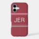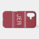 Le design personnalisé élégant comporte jusqu'à trois initiales en gras dans une police blanche ombragée sur un arrière - plan rouge pourpre contemporain. L'Arrière - plan est divisé en trois par deux bandes correspondant au-dessus et au-dessous des initiales. Modèle moderne simple d'utilisation permet une personnalisation facile. Envoyez un courriel à beachpausedesigns@gmail.com ou utilisez le lien de message dans cette liste avec des questions ou des demandes de couleur personnalisées.
