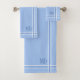 Cet élégant ensemble de serviettes comporte des rayures bleues et blanches ainsi que des initiales personnalisables simplement placées sur les coins.