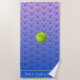 Personalize this stylish beach towel with the initials of a keen tennis player. The design has a tennis ball in the centre, on an ombre pink and blue background with a pattern of tennis rackets. The caption in white script can be edited for your own favourite tennis slogan. Or just use the suggested "Serve it, Smash it, Love it".