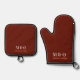 Initials Monogram Couple Name Burgundy Red Oven Mitt & Pot Holder Set