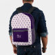 The Initials Violet & Blush Stripes - Purple Blooms Printed Backpack is part of the "Stripes and Flowers: Bath, Beach, Yoga, Travel" collection. The collection includes everything related to your bathroom, swimming at the pool or beach, relaxing there by journalling, doing yoga, playing cards or frisbee. And, of course, travelling to the beach with your favourite duffel bag, matching toiletry bag, and electronics cases. Connect virtual invitation cards. The playful design features purple stripes with alternating rows of purple flowers. The front pocket features your initials in script. Insert your initials to make it yours. For custom design enquiries or assistance with customization, please contact us at info@KBMD3signs.com.