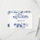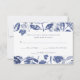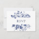 This lovely and stylish botanical wedding response card features trendy blue ink leaves on a white background.