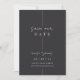Designed to coordinate with our Inline wedding collection, this beautiful save the date card features your wedding details, including date, location, and website, in white lettering on a soft ash black background accented with handwritten script and delicate vertical line detailing.
