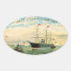 Vintage travel illustration promoting the Inman Steamship Company, showing an early steamship of a transitional design with sail rigging along with smokestacks.