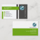 A simple design centred on rectangular columns. In the green column sits your name and job title. Directly below, there is a thin vertical green rectangle which accompanies green social icon buttons for your card details. At the right wall, there's a large grey rectangle that has the logo and its inverted business name by the side. Overleaf, the card has two portions. The upper white piece has the logo and business name. The green column directly underneath has the business details along with its slogan tagline option. If you decide to upload a photo instead of a logo, the dimensions are 1,000 x 1,000 pix. This design has lots of option which allows you to customize the card. This card would be great especially for heads of companies or the upcoming boss in you.