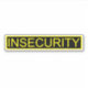 "Insecurity" A word play in the same style as the yellow text on the back of a security guard’s black shirt.