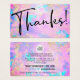Merci pour l'achat de votre forfait de carte de réduction client insérer dans une police décontractée et flirty détendue et de style moderne. Customisez pleinement le texte et les icônes des médias sociaux pour votre marque. Merci à vos clients et clients d'acheter avec vous en incluant ceci avec vos paquets et produits à dire Merci et de leur donner un code de coupon pour un achat futur afin d'encourager les affaires répétitives et de vous trouver sur les médias sociaux. Vous pouvez ajouter ou supprimer des icônes de médias sociaux (Twitter, Instagram, TikTok, Pinterest, Snapchat, Youtube, Facebook, LinkedIn) en choisissant "personnaliser plus loin" et en les activant/désactivant dans le panneau des calques et vous pouvez modifier les couleurs aussi!