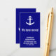 Partagez votre nouvelle adresse avec des contacts ou glissez dans vos cartes ou invitations. Personnalisez avec ce faire-part de déplacement d'ancre de bateau (indiqué : "Nous avons déménagé") et votre nom et les informations de changement d'adresse.