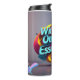 tumbler is firm and good size to hold a good grip on. Lid is durable as so is the tumbler itself. non breakable. holds just about 2 cups of coffee. image is good and stands out well for others to notice the printing of my artwork. the ink color black turned out well. that part I like.. it's solid and easily readable as far as the word/lettering is on the tumbler. The ink color Red is good as well, but the other colors not as vibrant as I thought, but yet I still like it!