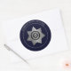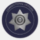 L'insigne d'agent correctionnel ROUND STICKERS est un dessin d'art graphique. Le badge est créé en argent (ou or) et en noir avec une petite touche de bleu. Un badge décoratif de sept (7) points d'argent ou d'étoile d'or forme l'insigne. Le texte qui courbe le haut de l'insigne dit : MINISTÈRE DES CORRECTIONS. Texte en bas : AGENT CORRECTIONNEL. Ces mots s'assoient sur un anneau bleu solide. Plus d'argent/or décorent l'insigne partout. Au centre se trouve un emblème d'aigle aux étoiles d'argent et d'or. Le texte plus petit au centre dit : Sceau de l'Etat. Le badge n'est PAS spécifique à l'état. Une jante extérieure bleue avec du texte argent/or courbant autour du haut qui dit : OFFICIER CORRECTIONNEL. Ce badge est en argent ou en or avec des arrière - plans noirs ou bleus. Cet arrière - plan est bleu solide avec un badge en argent, du texte décoratif en argent et des jantes en argent.