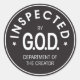 Sticker says "INSPECTED BY G.O.D., Department of the Creator"