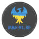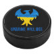 Un design inspirant de mousepad qui fait écho à la résilience du peuple ukrainien, présente une silhouette d'oiseau phénix dans les couleurs bleu et jaune du drapeau ukrainien avec le texte "L'Ukraine va s'élever" en caractères désespérés sur un arrière - plan noir