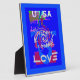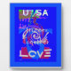 White: Employed for the "USA" and "LOVE" text, offering a strong contrast against the blue background, ensuring the words stand out prominently.