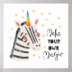 Image By Maria Skrigan | Shutterstock. Image ID: 1101215132 | This illustration features a cute funny zebra with a unicorn horn, and a hand lettered quote "Make Your Own Magic".