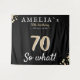 Inspirational 70th Birthday Party Black Backdrop. Funny and inspirational quote 70 so what for him or for her. Use the tapestries as a backdrop for the 70th birthday party. Personalize it with your name, date and age.