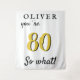 Inspirational 80th Birthday Party Backdrop. Funny and inspirational quote 80 so what for him or for her. Use the tapestries as a backdrop for the 80th birthday party. Personalize it with your name and age.