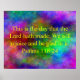 A durable 16X20 poster with and Inspirational bible verse. Perfect for sunday school classes and bible schools. Customizable. Features Psalm 118:24 "This is the day that the Lord hath made; We will rejoice and be glad in it."