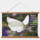 This beautiful tapestry wall hanging features a close-up of a white butterfly resting on a flower with a purplish background. The inspiring quote by Joyce Meyer, "God not only sees where you are, He sees where you can be," adds meaning to this elegant piece. Perfect for uplifting any space, this wall decor makes a stunning addition to your home or as a thoughtful gift.