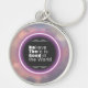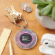 Inspirational cloud quote keychain with glowing violet ring of light. "Believe there is good in the world. Be the good."
