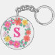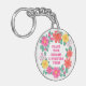 Customize this keychain with your monogram on the back and your own inspirational, motivational quote or affirmation on the front. It features a modern flower design with pink, orange and yellow flowers.