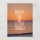 Inspirational Enjoy the Little Things Quote. It's the little things in life that matter and that's the message in this simple design. With an ocean sunset and orange skies, 'enjoy the little things' is the centre quote in white.