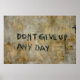 The words “Don’t give up any day” were written in large letters on the side of a building in Stonetown, Zanzibar which is an island off the coast of East Africa. Zanzibar governs itself, but is actually part of Tanzania. Zanzibar is 97% Muslim.