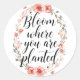 Inspirational Growth Quote with Pink Flowers Classic Round Sticker