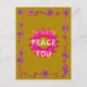 This artwork prominently features the phrase "Peace Be With You" displayed in the centre. The text is stylized and surrounded by a decorative floral border, creating a balanced and symmetrical composition that draws the eye to the uplifting message. A solid colour background provides a clear contrast, enhancing the overall design.
