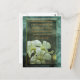 Encouragement postcard for facing difficult times. Green and blue grunge background with white flowers. Front text reads: "When God leads you to the edge of the cliff ..." Back reads "May the Grace of God be with you during this difficult time in your life."