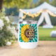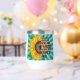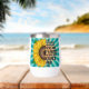 Pretty hand drawn yellow sunflower with a magical background. Inspirational quote colourful art. Retro colours.