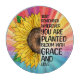Pretty hand drawn yellow sunflower with a magical background. Inspirational quote colourful art. Retro colours.
