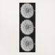 Elegant motivational yoga mat featuring an original black and white macro photograph of beautiful dandelions with an inspirational quote in an elegant calligraphy white font that reads "Some see a weed, Some see a wish"