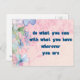 A motivational inspirational quote on a pink and blue floral background. Blue flowers decorate the left edge of the design while the pink flowers fade into the background for a soft delicate effect. The quote says do what you can with what you have wherever you are.