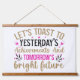 White background wall tapestry with caption Lets Toast To Yesterdays Achievements & Tomorrows Bright Future
