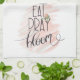 Our custom kitchen towel adorned with Soft Pink Floral Eat Pray Bloom. View our full line of products in our Zazzle store.