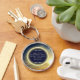Inspirational sun quote keychain with glowing yellow ring of light. "Be the change you wish to see in the world"