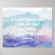 inspirational Thoreau quote poster abstract art in blue and purple with white text It's not what you look at that matters, it's what you see wall art decor for home or office. Original abstract art copyright Ann Powell all rights reserved.