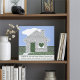 A personalized congratulations card for a new homeowner, featuring a charming design that celebrates the joy of a new home. The centerpiece is creative typography showcasing heartwarming phrases about home, beautifully overlaid on a picturesque photo of a house adorned with a heart, a cheerful bird in the front yard, and a vibrant blue sky. The design also includes a customizable typography field, allowing for personal messages or other unique customizations to make the card even more special.