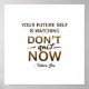 Transform your space into a powerhouse of motivation. This minimalist poster reminds you daily that your efforts today shape your future. “DON’T QUIT NOW — Future You is Watching” is more than a quote — it’s your mission. Hang it in your room, office, gym, or study area for daily inspiration.