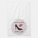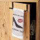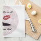 Cute kitchen towel with a logo including a high heel shoe and berry coloured kiss. Script lettering: IMPROVE THE WORLD: LET WOMEN LEAD.